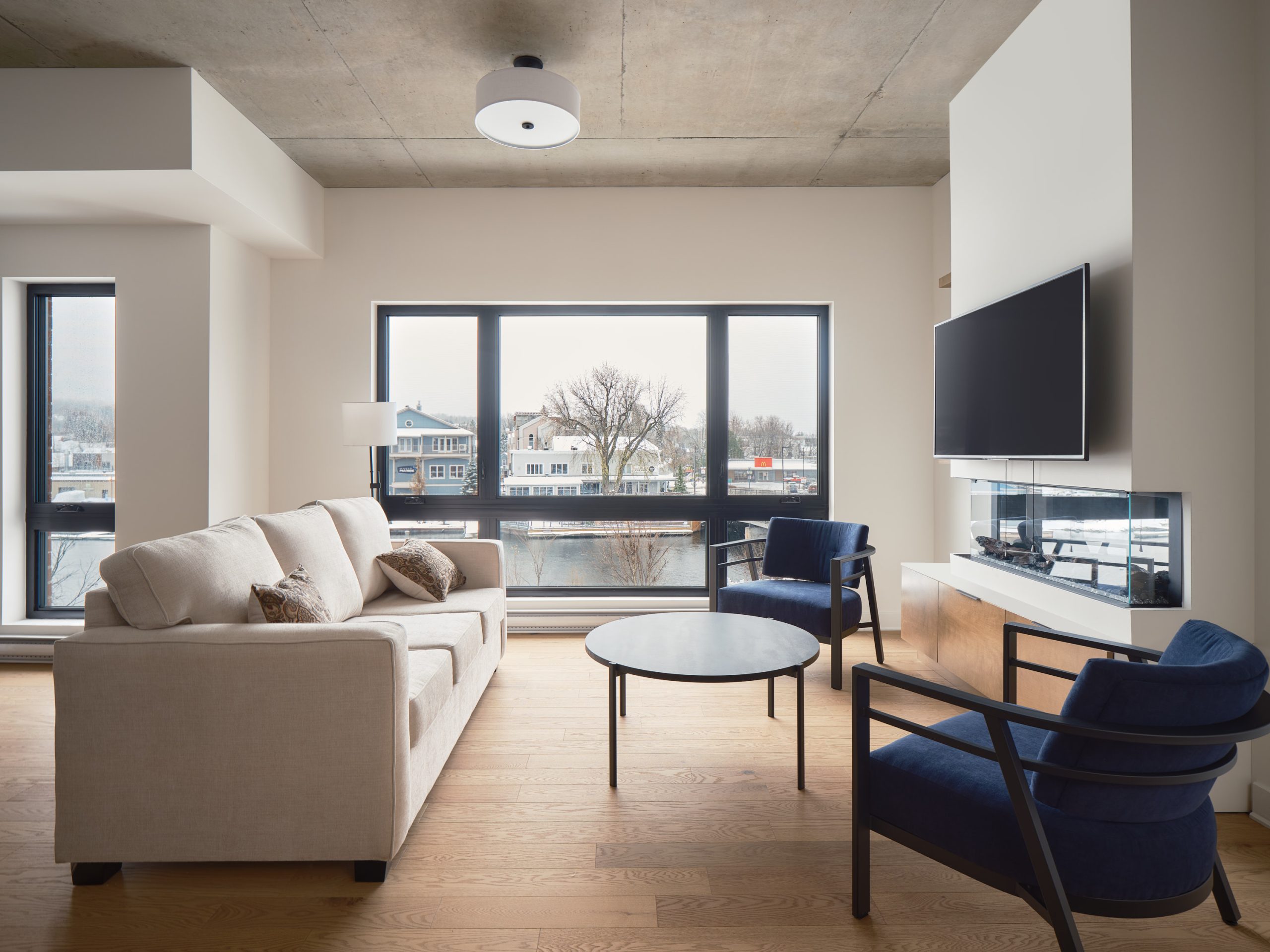 Notre hôtel de Magog au Québec dispose de 30 unités haut de gamme de style condominium à l’esthétique moderne, meublées et décorées par une équipe de designers professionnels. Des plafonds de neuf pieds, une fenestration généreuse, des comptoirs en quartz, des murs de béton et des balcons chauffés créent des espaces invitants pour la détente après une journée de voyage, d’affaires ou d’exploration de la ville de Magog.