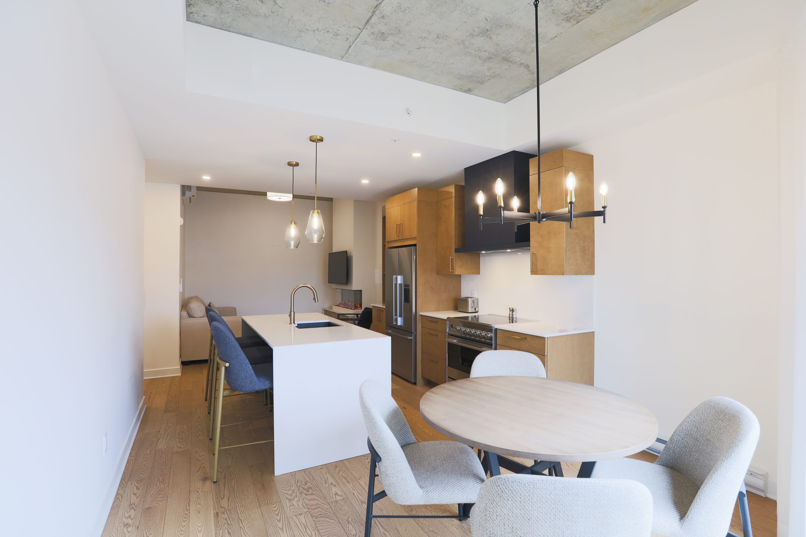 Nos unités d’une chambre offrent un refuge luxueux et spacieux. Dotées d’une cuisine entièrement équipée, d’une chambre et d’un salon séparés, ces suites allient intimité et confort, ainsi que des équipements modernes et un mobilier élégant, garantissant un séjour agréable avec une touche de raffinement et de détente.