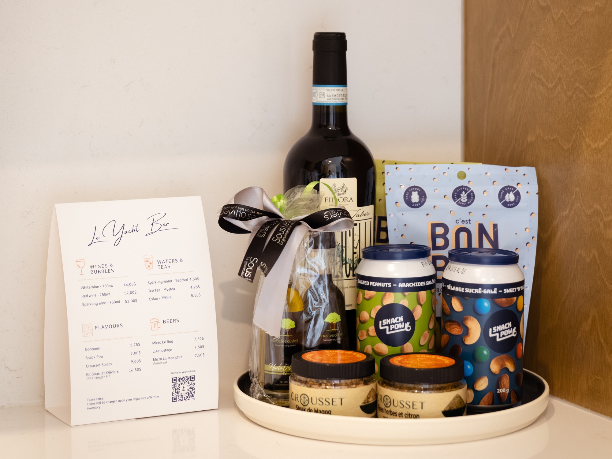 Découvrez des produits locaux directement offerts dans votre suite. Chaque unité dispose d’un mini-bar accessible pour une pause gourmande.