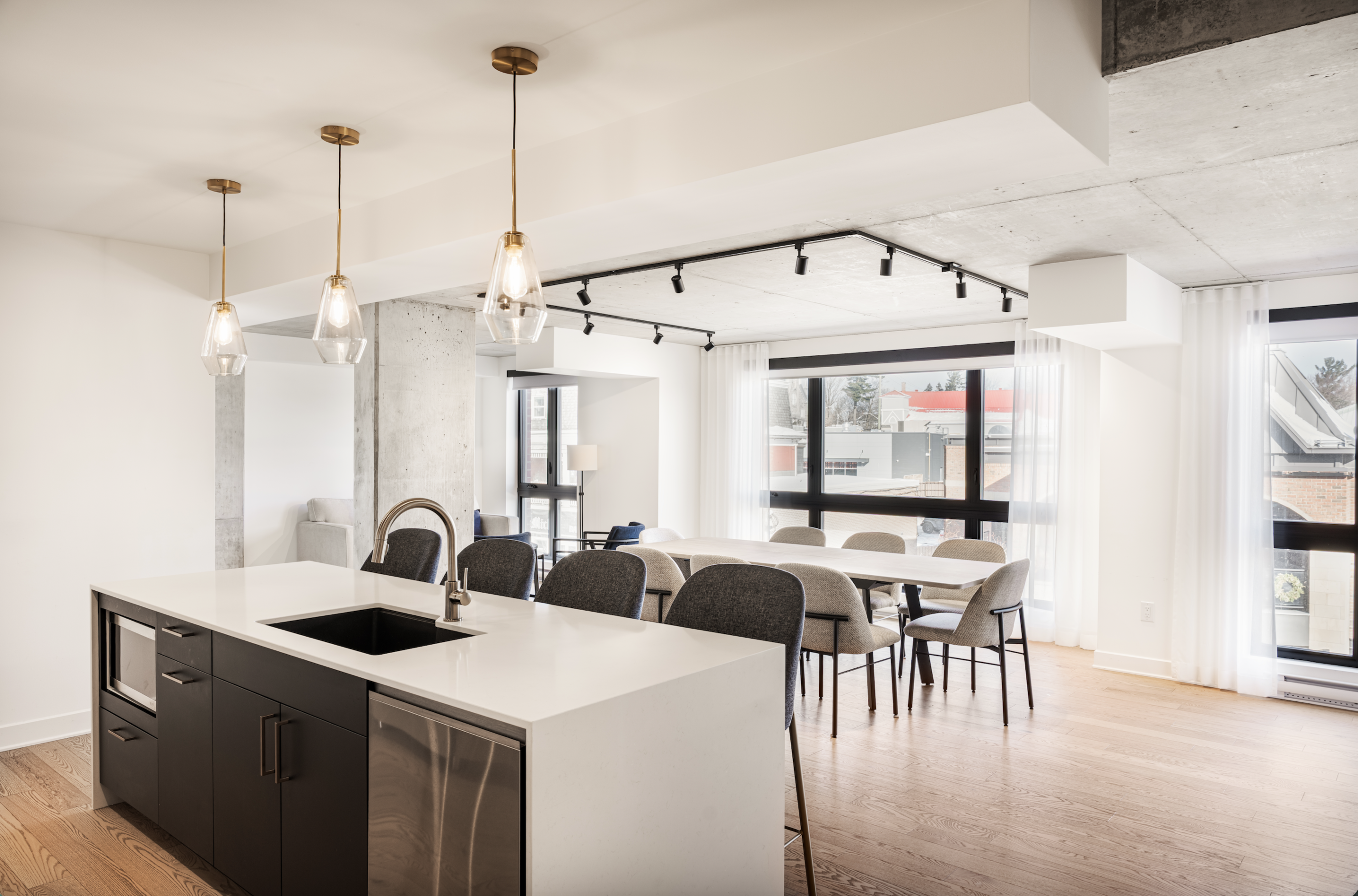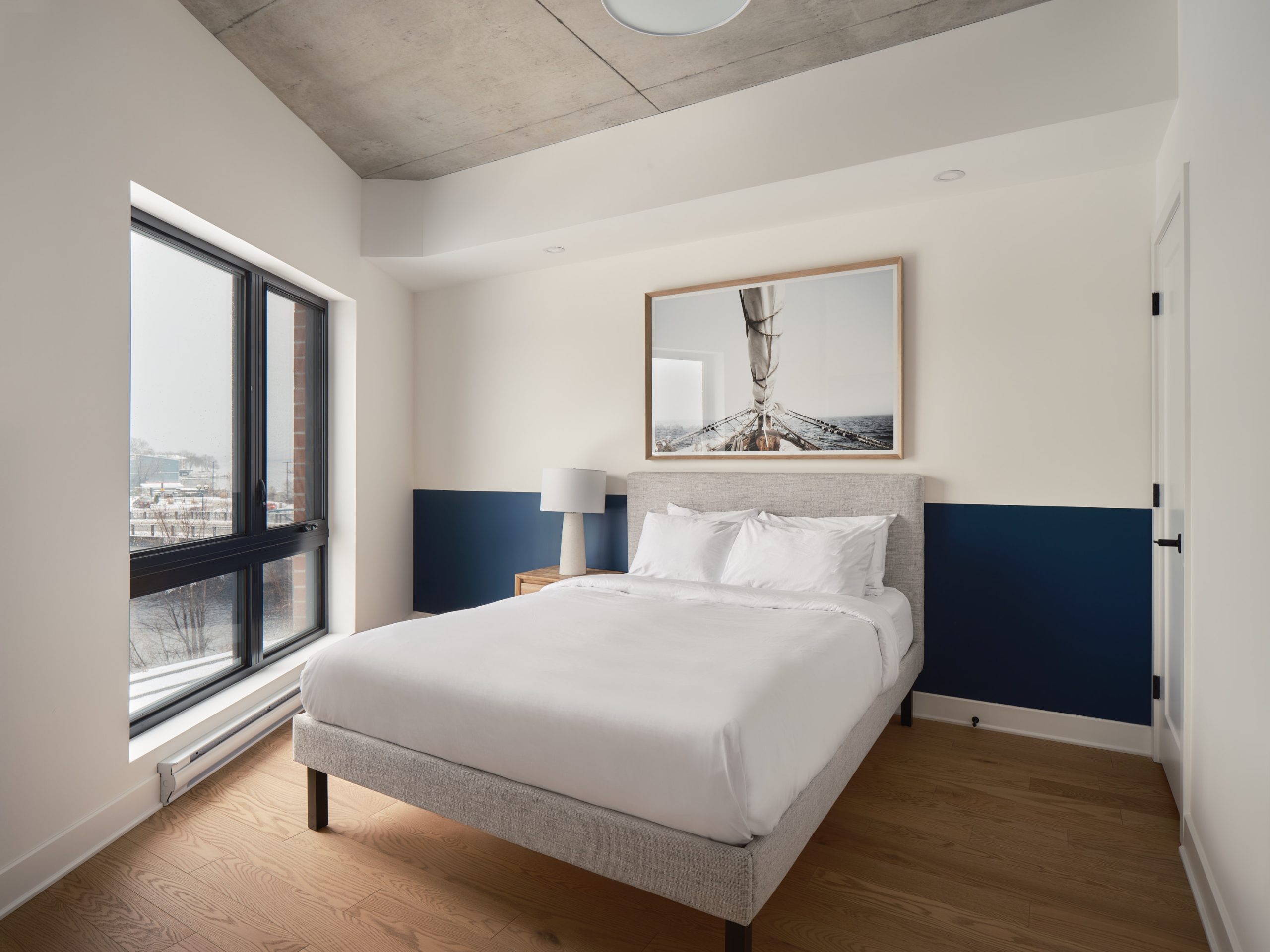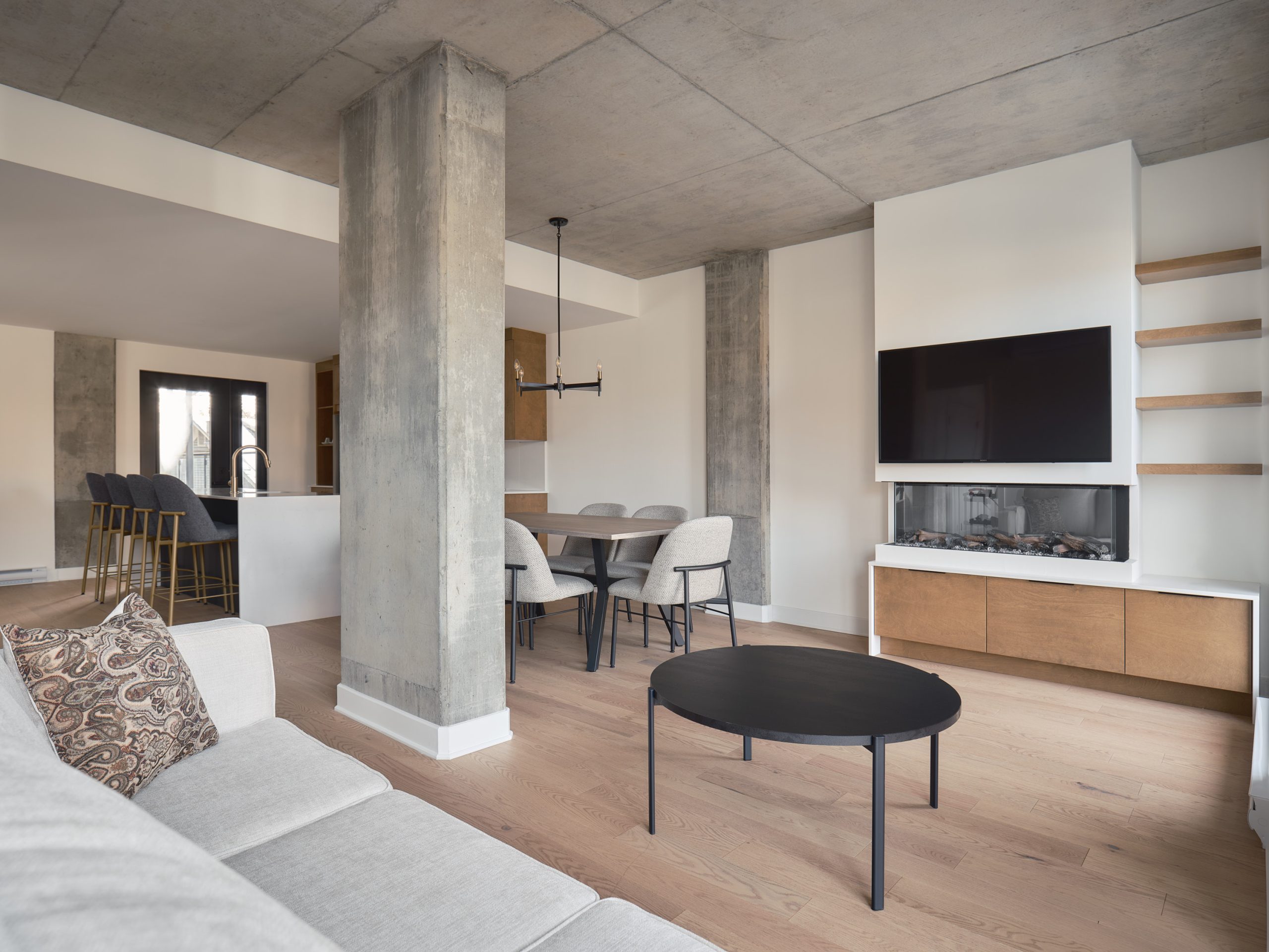 Our luxury hotel in Magog features 30 high-end condominium-style suites with a modern aesthetic, fully furnished and curated by a team of professional designers. Nine-foot ceilings, expansive windows, quartz countertops, fireplaces, and heated balconies come together to create warm, inviting living spaces.