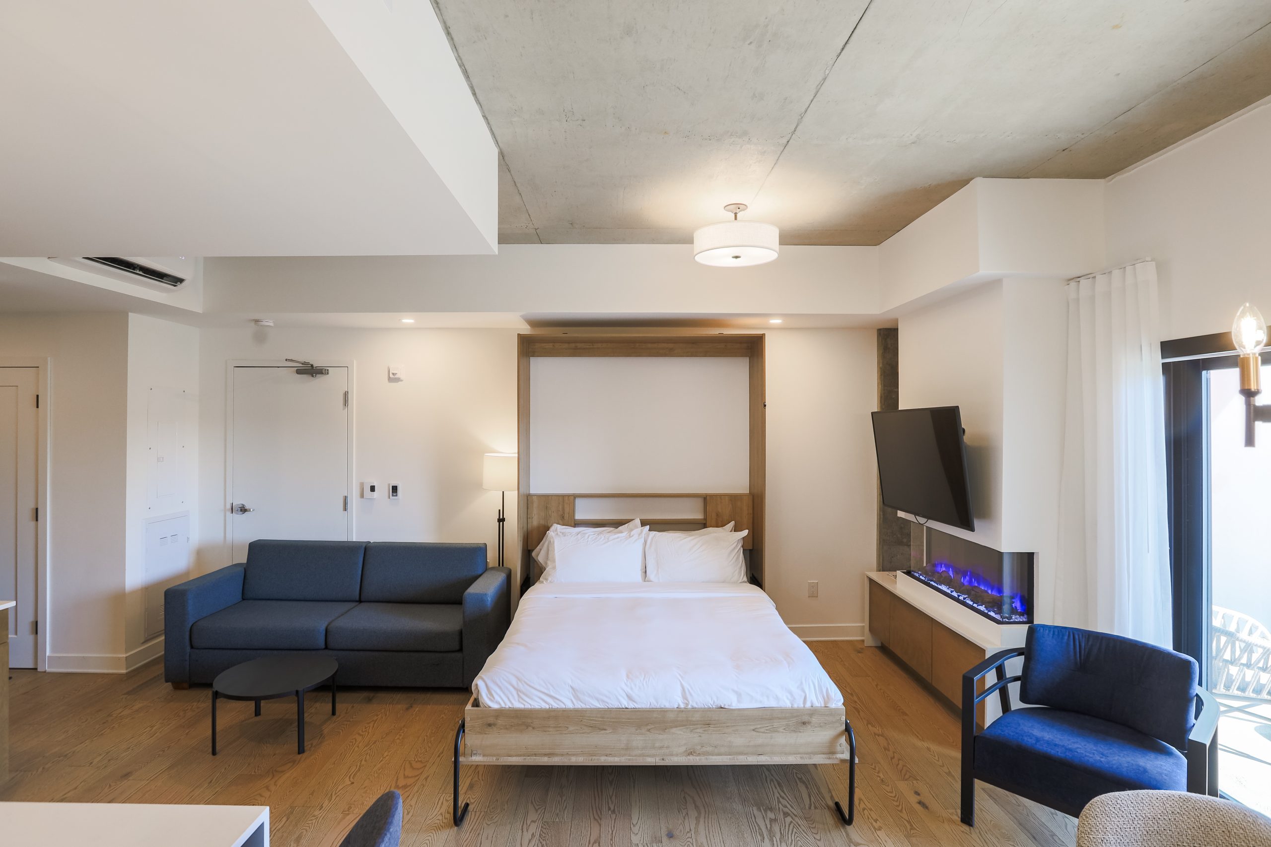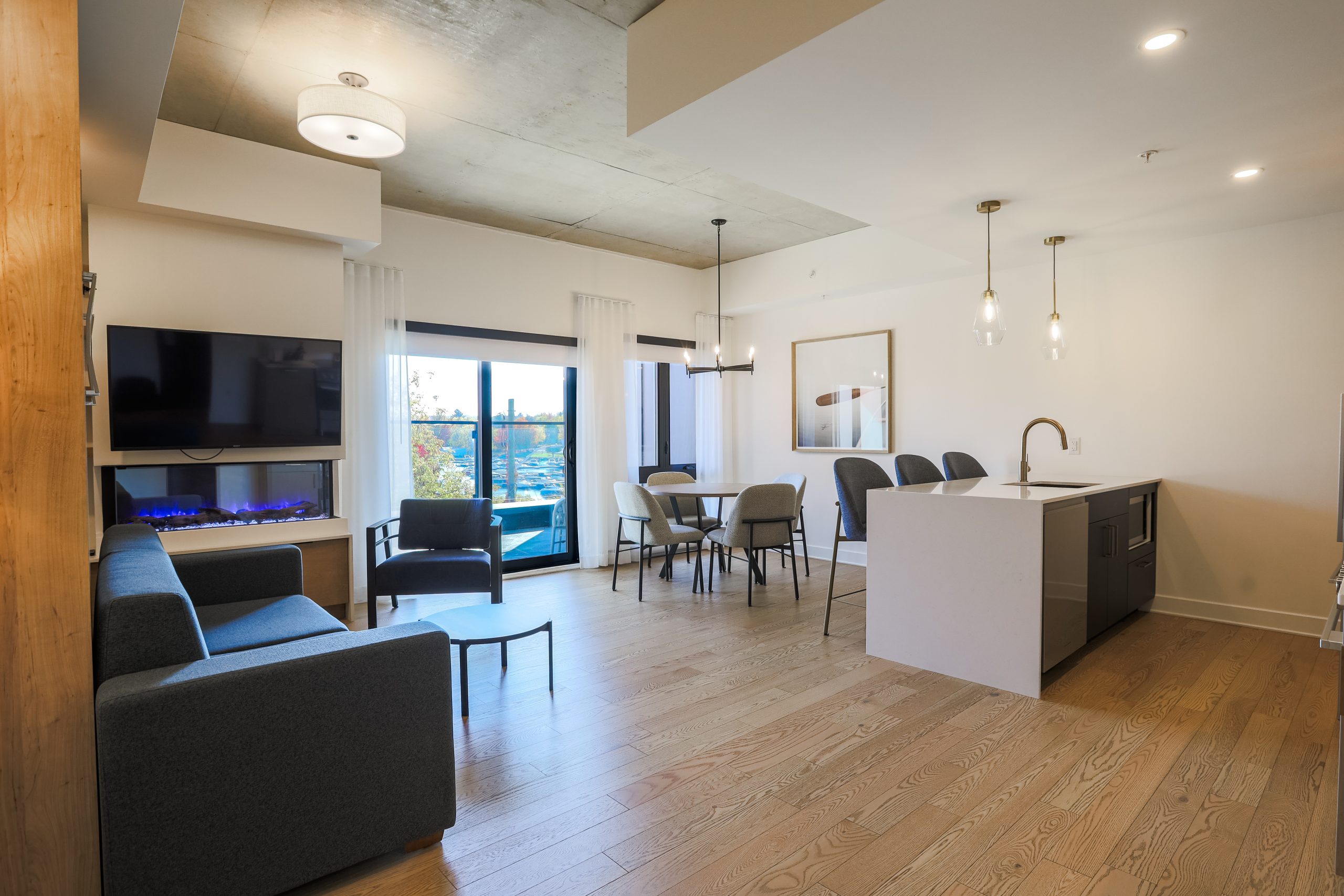 Un studio lumineux et fonctionnel offrant un grand lit escamotable, une cuisine entièrement équipée et un balcon privé pour savourer l’air frais des Cantons-de-l’Est.