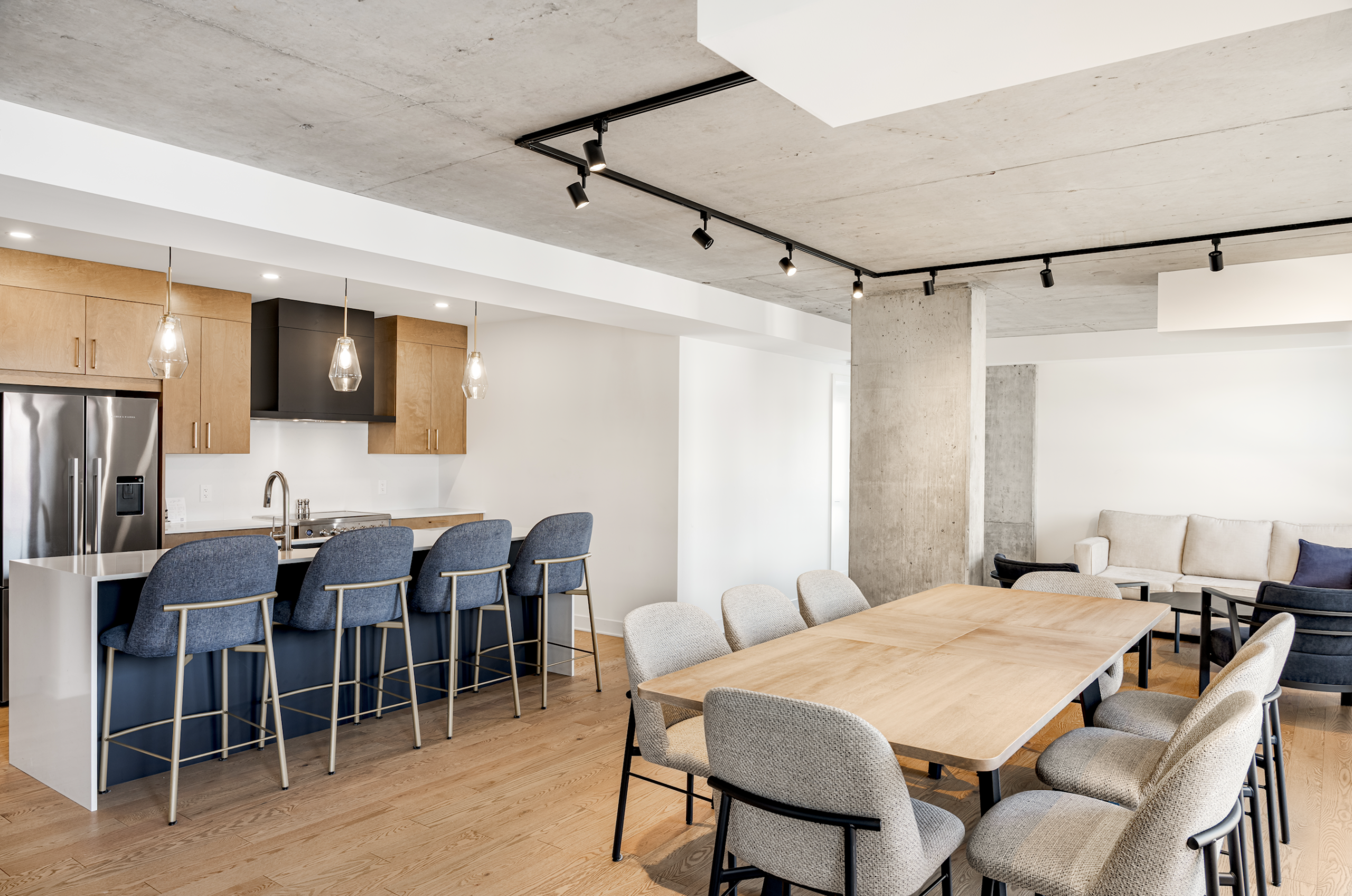 Son balcon chauffé dévoile une vue imprenable sur la rue Principale, pour vivre pleinement l’effervescence du centre-ville dans un cadre résolument raffiné.