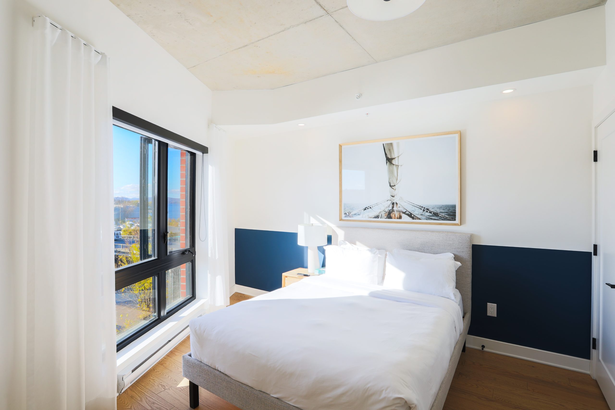 Une unité d’une chambre offrant un grand lit et un balcon privé.