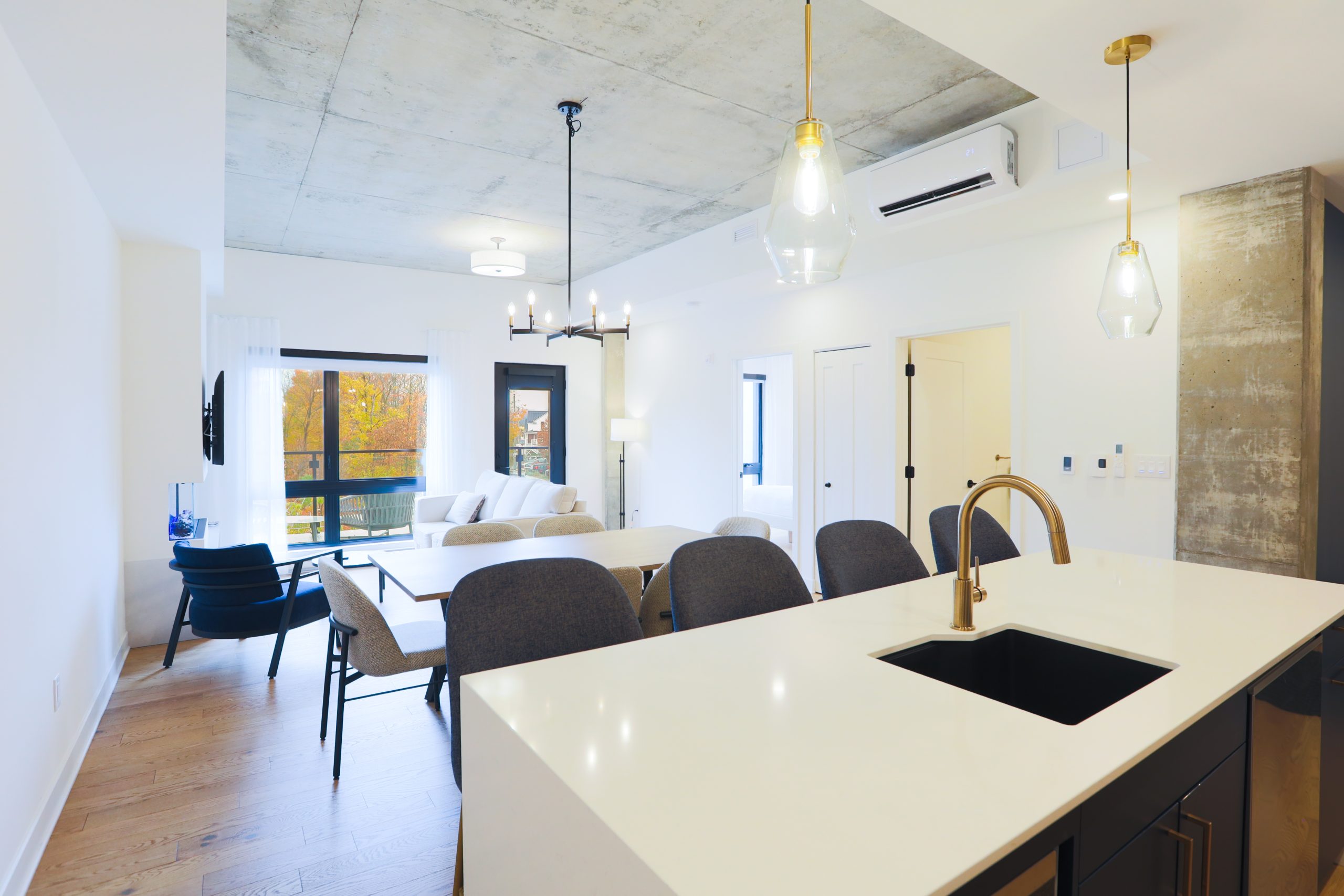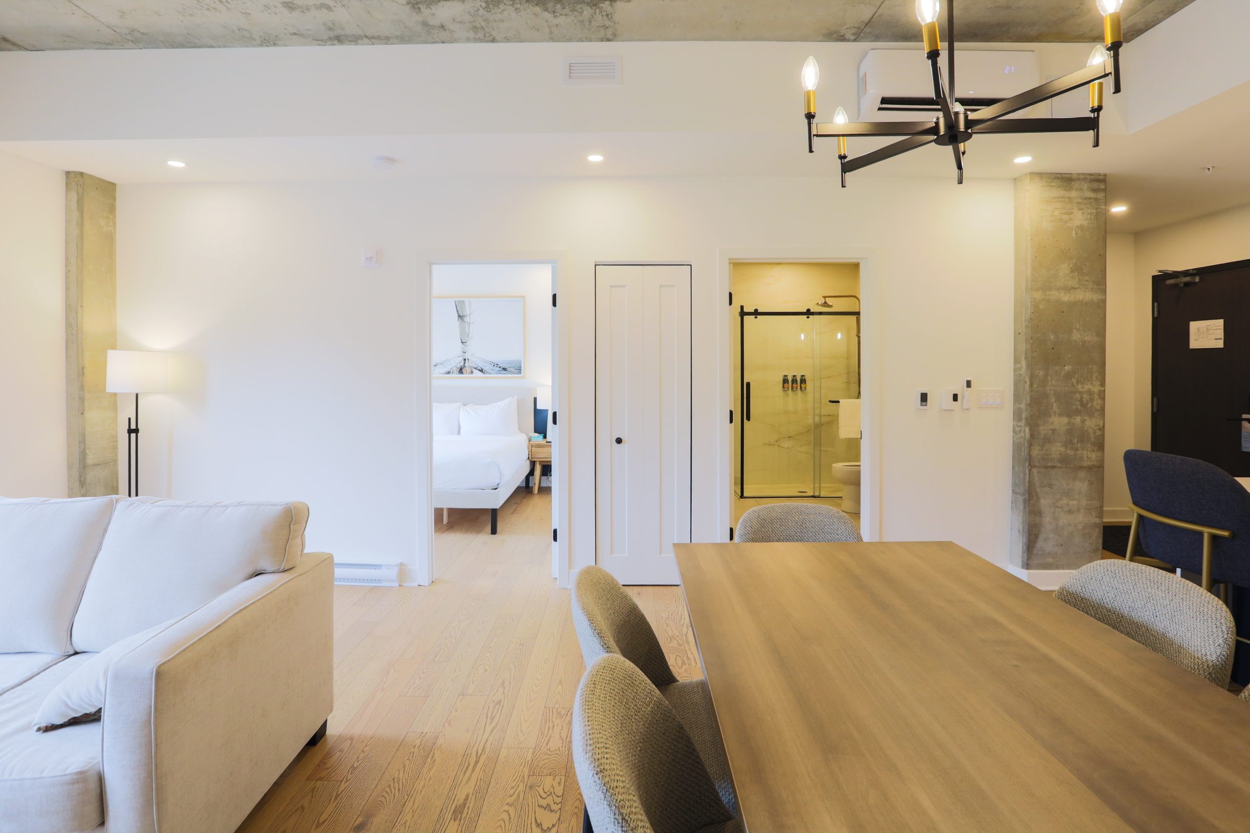 Une unité d’une chambre offrant un grand lit et un balcon privé.